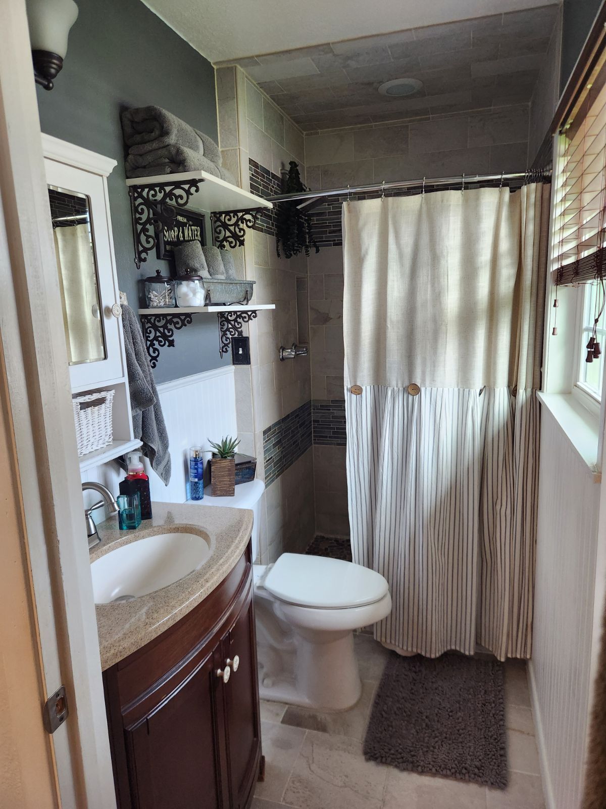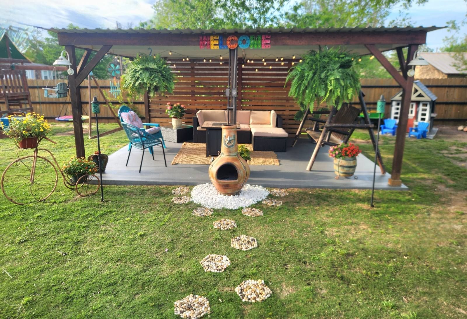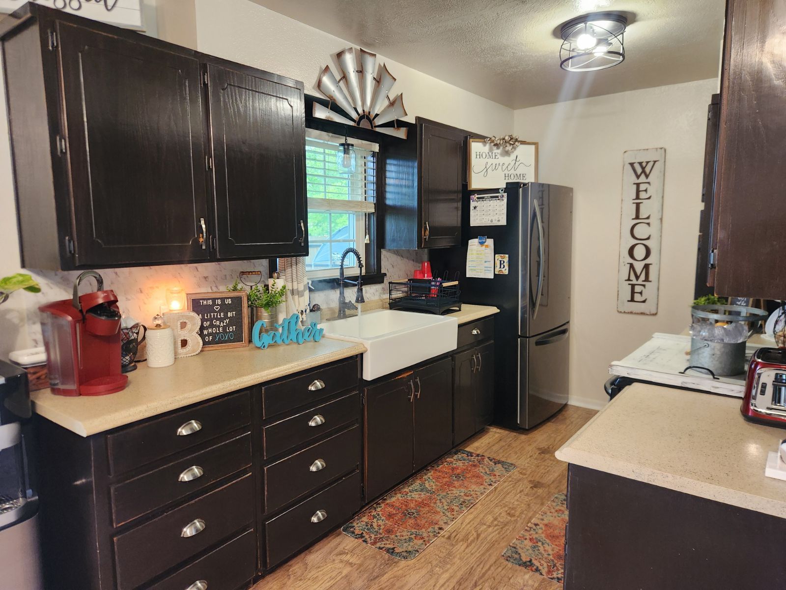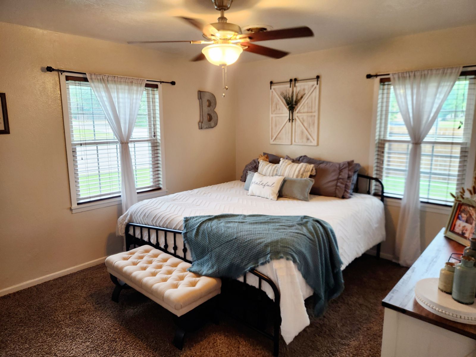 A charming brick home with metal roof sitting on corner lot. Very well maintained 3 bedrooms, 2 baths with many updated features throughout the home. When you walk into the front door you can feel the thought and love that went into the remodeling of this home. Some of the features included in the remodel are: carport, enclosed the garage, took out a wall to make room for a larger living room, a pantry and laundry room, added new windows and coverings, redesigned the kitchen to add a slide in range along with a farm house sink, added new lighting, ceiling fans, updated both bathrooms and of course paint. Outside you will find a privacy fenced back yard, nice grass cover, an entertaining area, covered patio, fire pit, large shade trees for enjoying those family gatherings. Also included in the back is a newly added storage building. On top of all this, the home sits within walking distance to the schools.