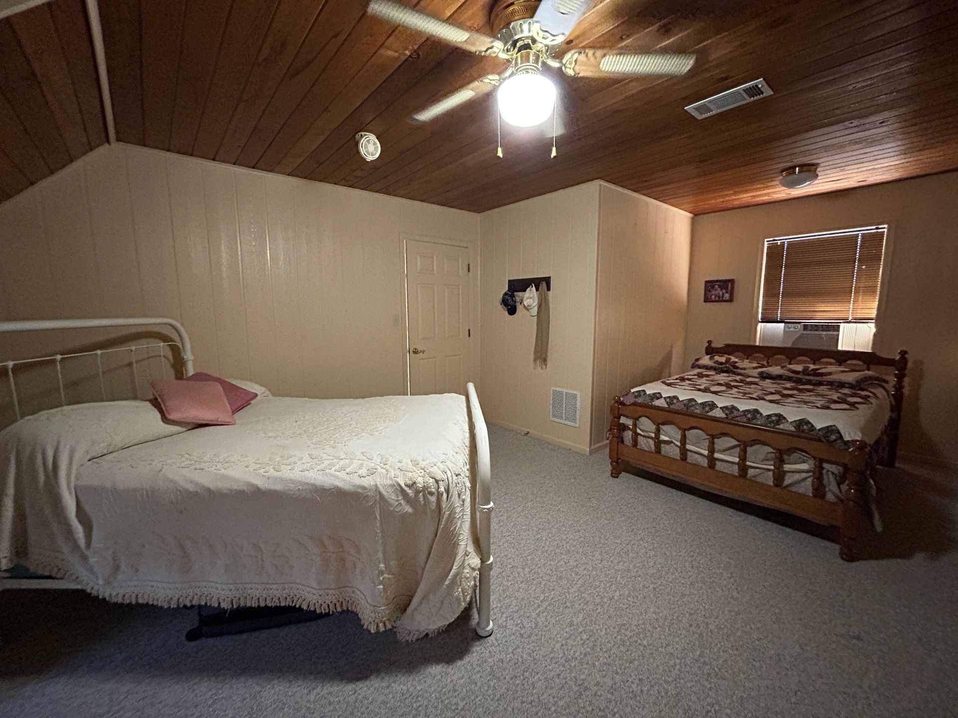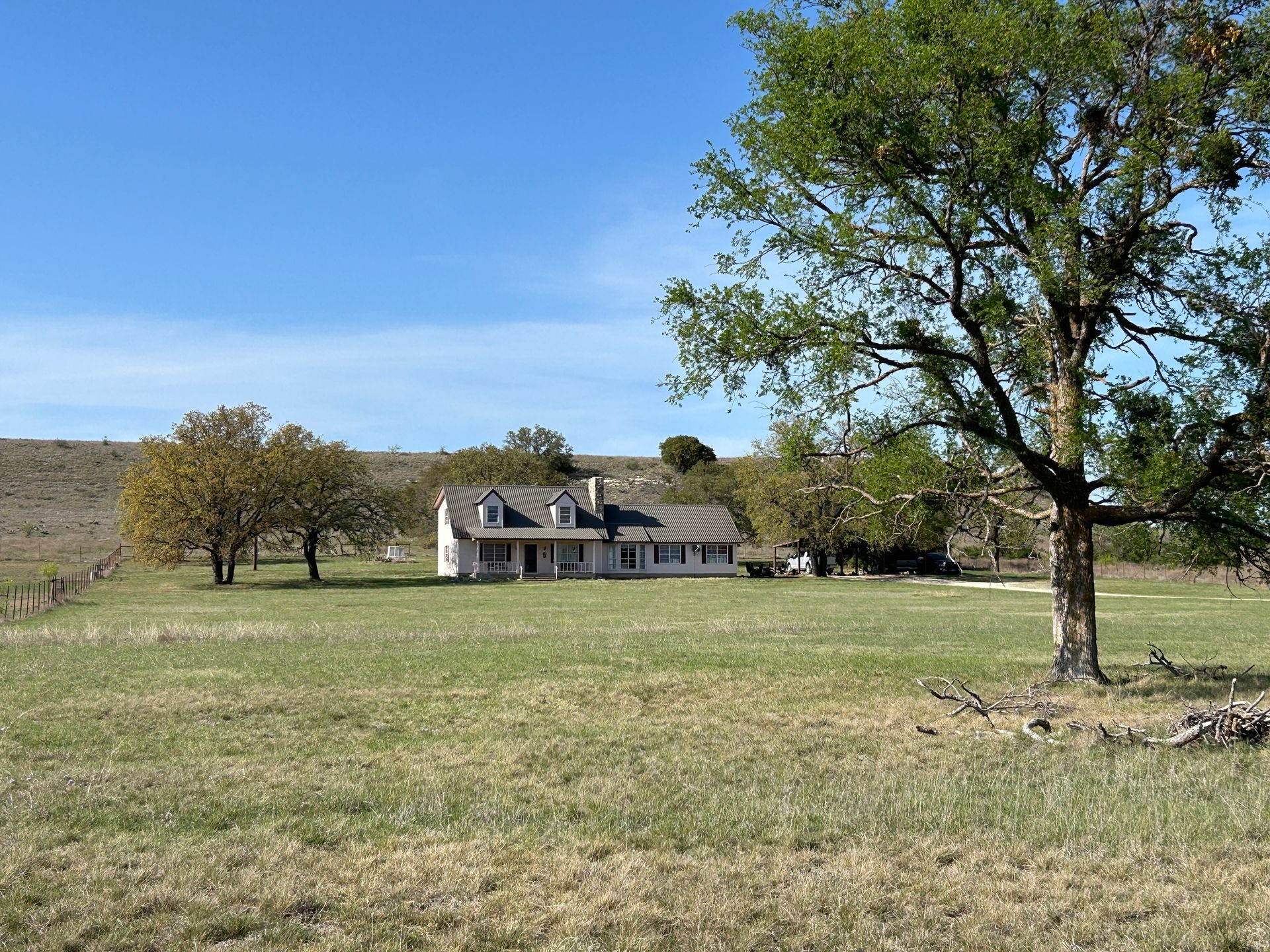 If you are looking for the country way of life, this might be for you. 219.13 acres with elevation changes that include browse for deer hunting, pasture land for running cattle, recreational property, enjoy those morning sunrises and sunsets or just relax and take in all of the beautiful views and peaceful surroundings that come from living in the country. If that is not enough, you can drive up a lane to a 2420 square foot 2 story ranch house and sitting at the base of a hill nestled among shade trees. Containing 4 bedrooms and 3 baths, you can see the care and love the owners put into this home to make it their own. Total electric with central heat and air. When you walk onto the front porch, you will enter the front door to the living room. You can feel the warmth and coziness with stained wood plank ceilings throughout the home and a fireplace that was constructed of rock from the property. The flooring consists of tile and carries into the kitchen and dining. The kitchen has plenty of custom cabinets with an island in the center. The dining room is open and sits to one end of the kitchen. The laundry and mud room is off of the kitchen and opens to a large covered patio across the back of the house. 2 large bedrooms, one on each end of the house and each having a bathroom are on the first level. Upstairs there are 2 more bedrooms with light coming from the windows set in the dormers and a shared bath. There is also a small cabin that is need of some TLC but would make a great guest house or hunting cabin. There is a well and septic for each of the house and cabin. There are 2 ponds on the property and have a portion of a wet weather creek that runs along the property. Also on the property are some working pens, a shed with a windmill. Condition unknown. Fences or fair to good.