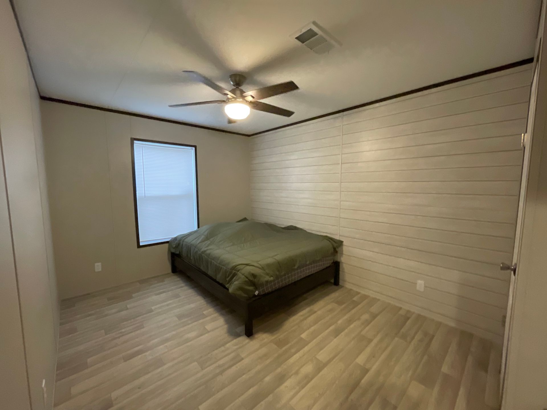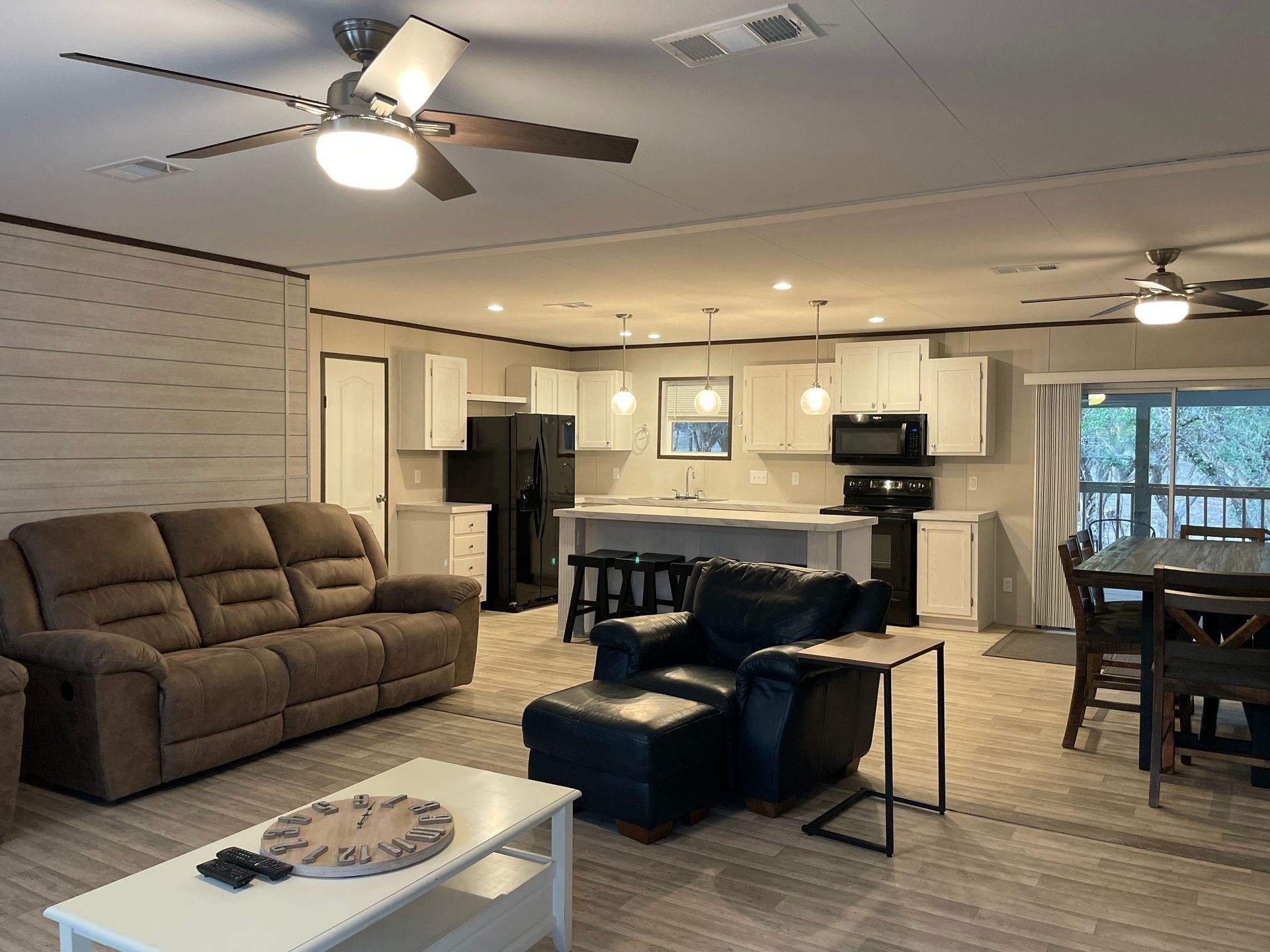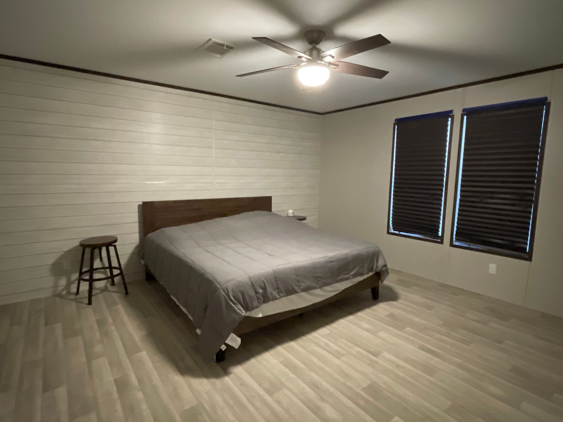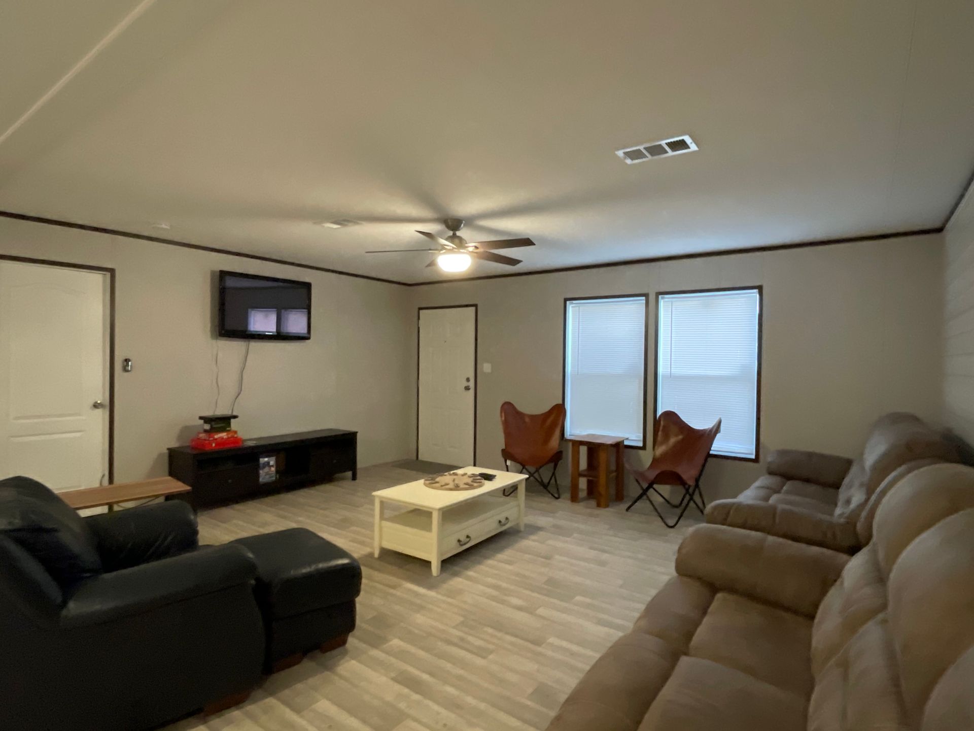 Entering the property through a private gate you will find a 2022 year model 5 bedroom, 3 bath manufactured double-wide home. Inside you will find an inviting open-concept design consisting of a living room, kitchen with a large eat-in bar, large pantry, and a dining room with sliding glass door to access the back porch. The primary suite features a spacious walk-in closet, a large bathroom with a dual-sink vanity and shower/tub. Four additional bedrooms provide comfortable retreats, sharing access to 2 full bathrooms. You will find a large utility room with abundant storage space. There is laminate wood flooring throughout and farmhouse accents. Enjoy the views of your property from the back porch that has 3 lighted ceiling fans and runs the entire length of the home. The home is serviced by a 30 gpm water well including insulated well house, a water softener system, 2500 gal water storage tank, and septic system. The details throughout this home make it welcoming inside and out.