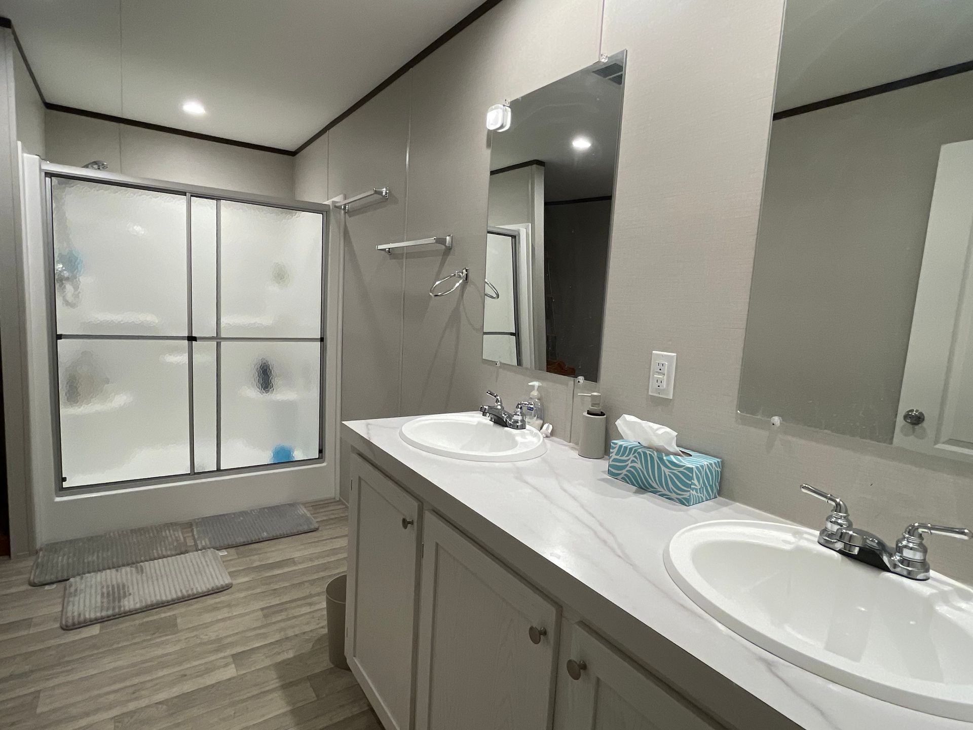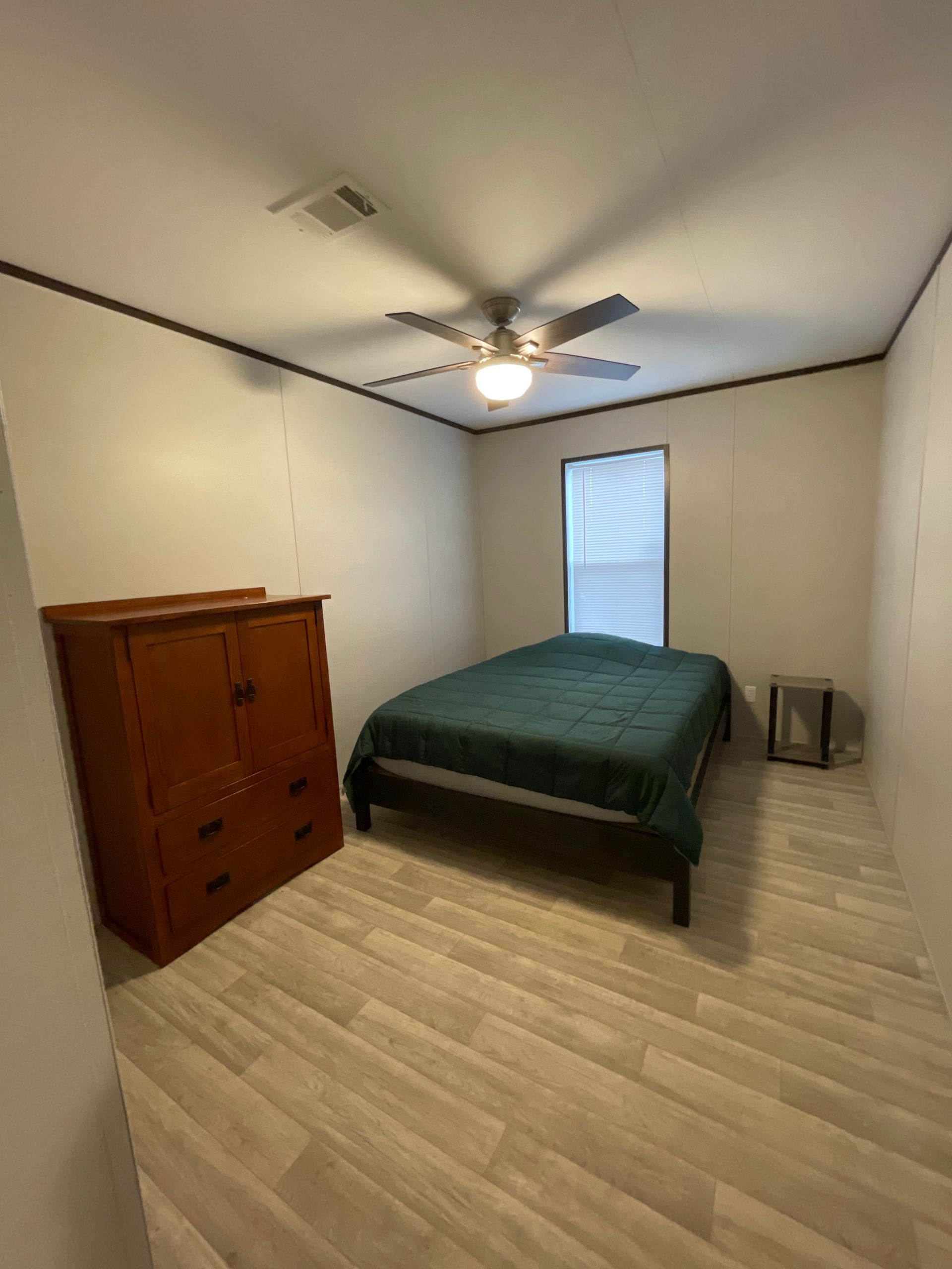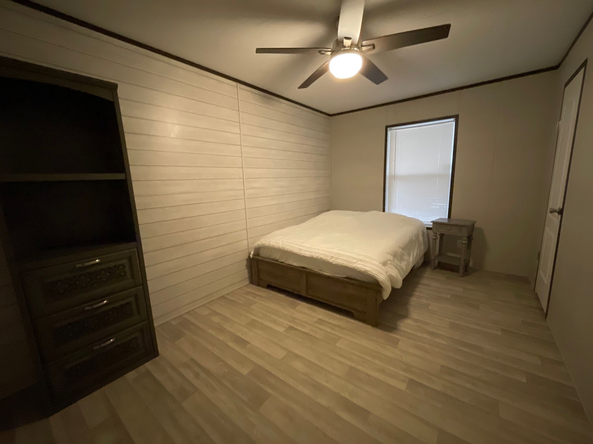 Entering the property through a private gate you will find a 2022 year model 5 bedroom, 3 bath manufactured double-wide home. Inside you will find an inviting open-concept design consisting of a living room, kitchen with a large eat-in bar, large pantry, and a dining room with sliding glass door to access the back porch. The primary suite features a spacious walk-in closet, a large bathroom with a dual-sink vanity and shower/tub. Four additional bedrooms provide comfortable retreats, sharing access to 2 full bathrooms. You will find a large utility room with abundant storage space. There is laminate wood flooring throughout and farmhouse accents. Enjoy the views of your property from the back porch that has 3 lighted ceiling fans and runs the entire length of the home. The home is serviced by a 30 gpm water well including insulated well house, a water softener system, 2500 gal water storage tank, and septic system. The details throughout this home make it welcoming inside and out.