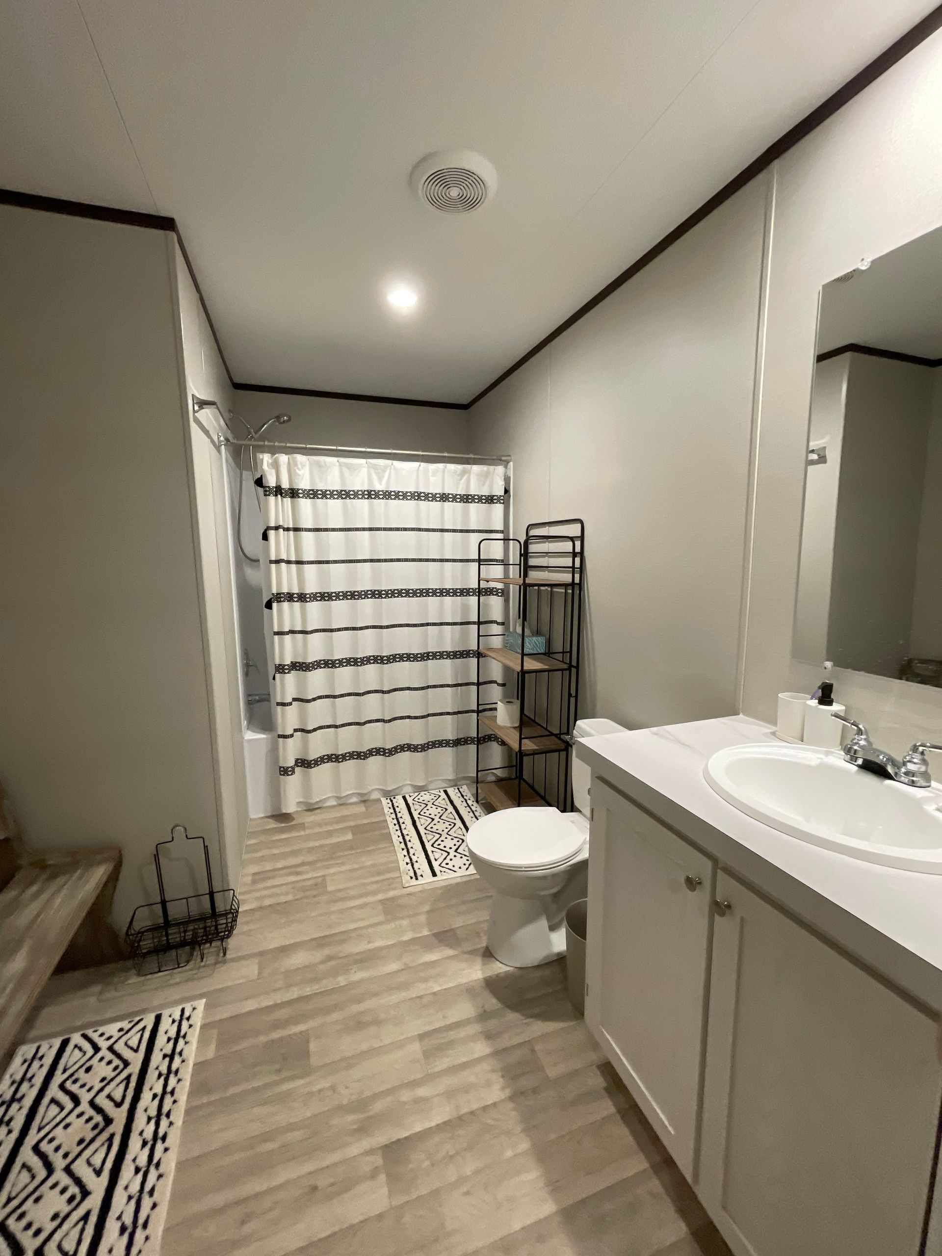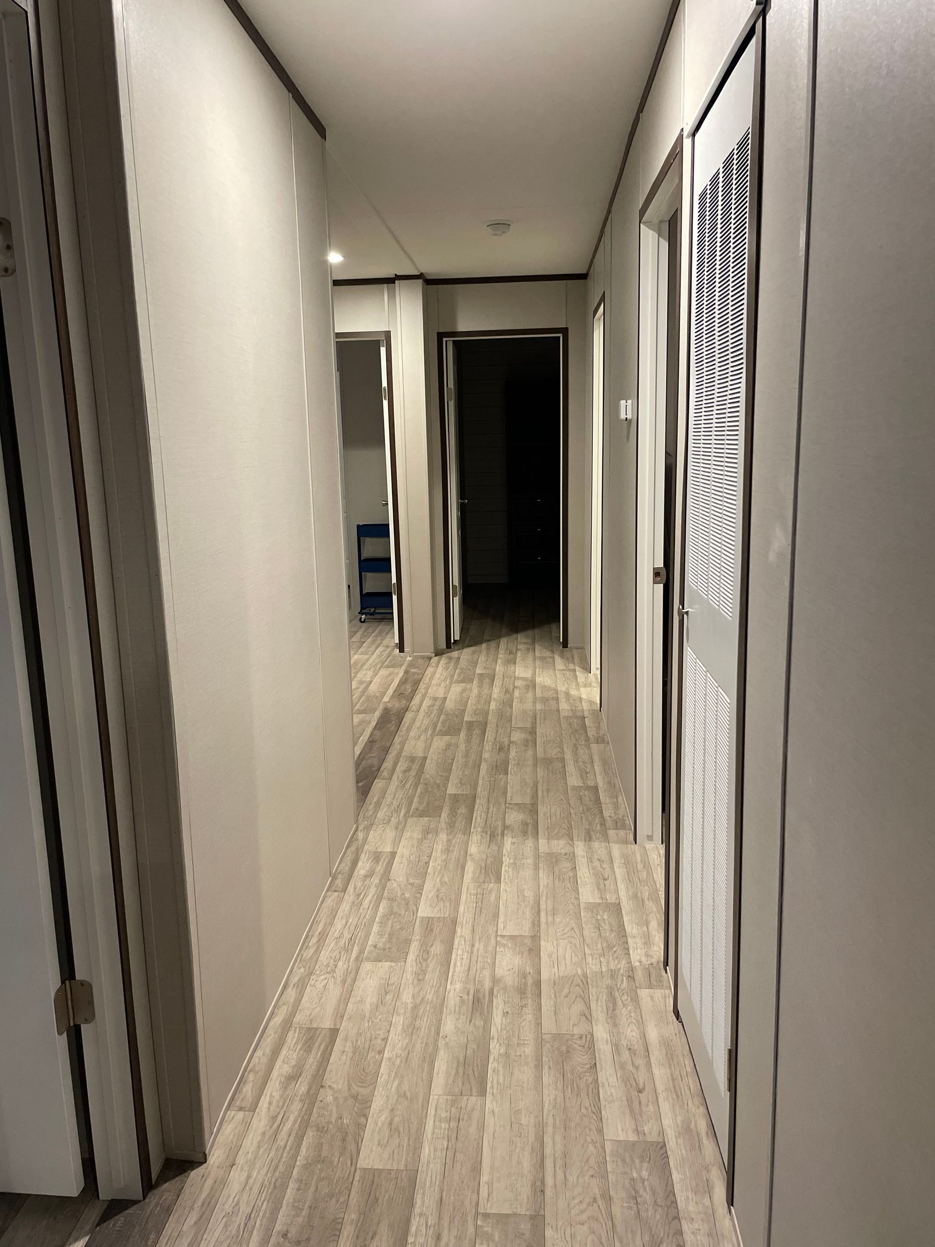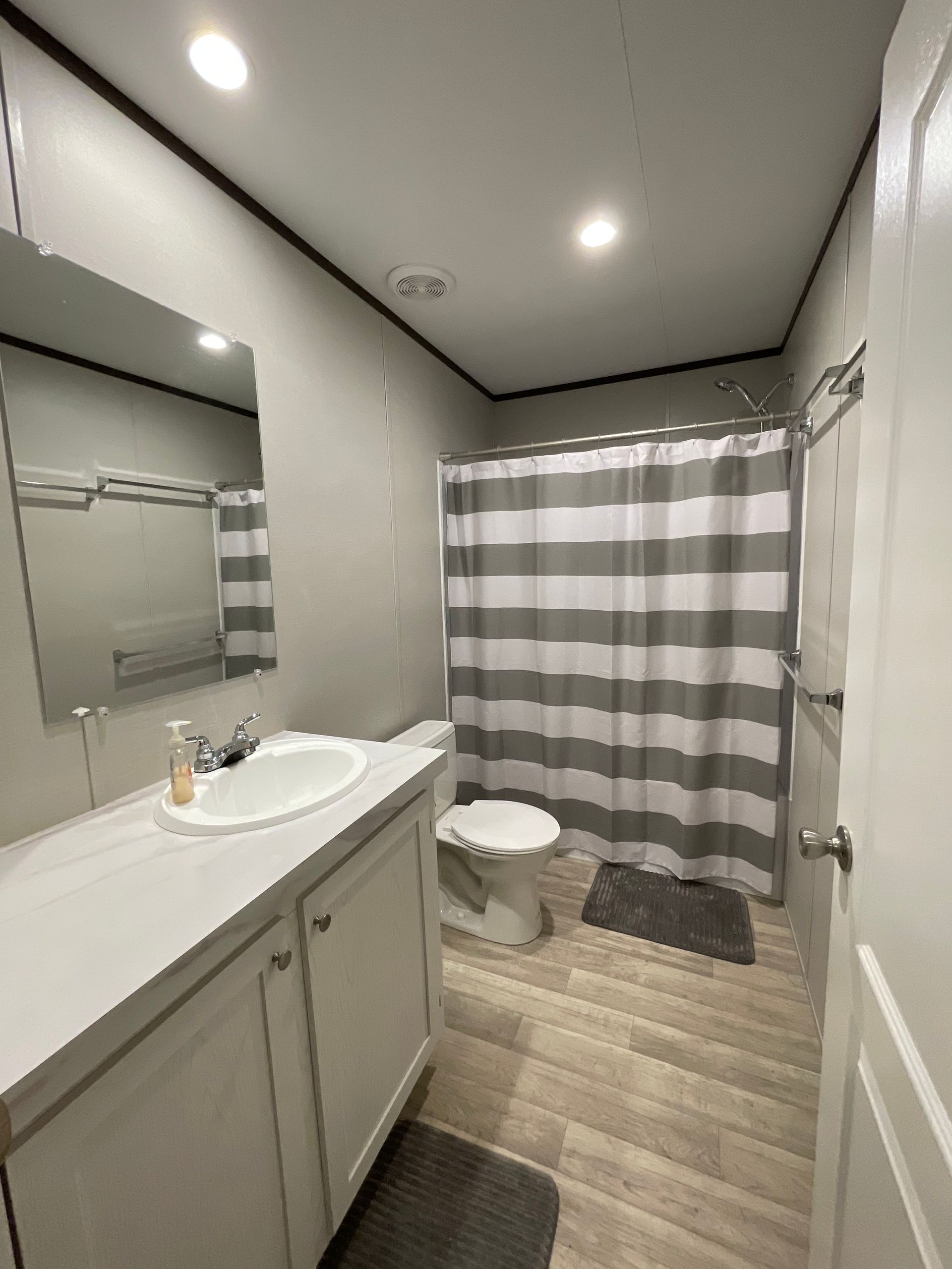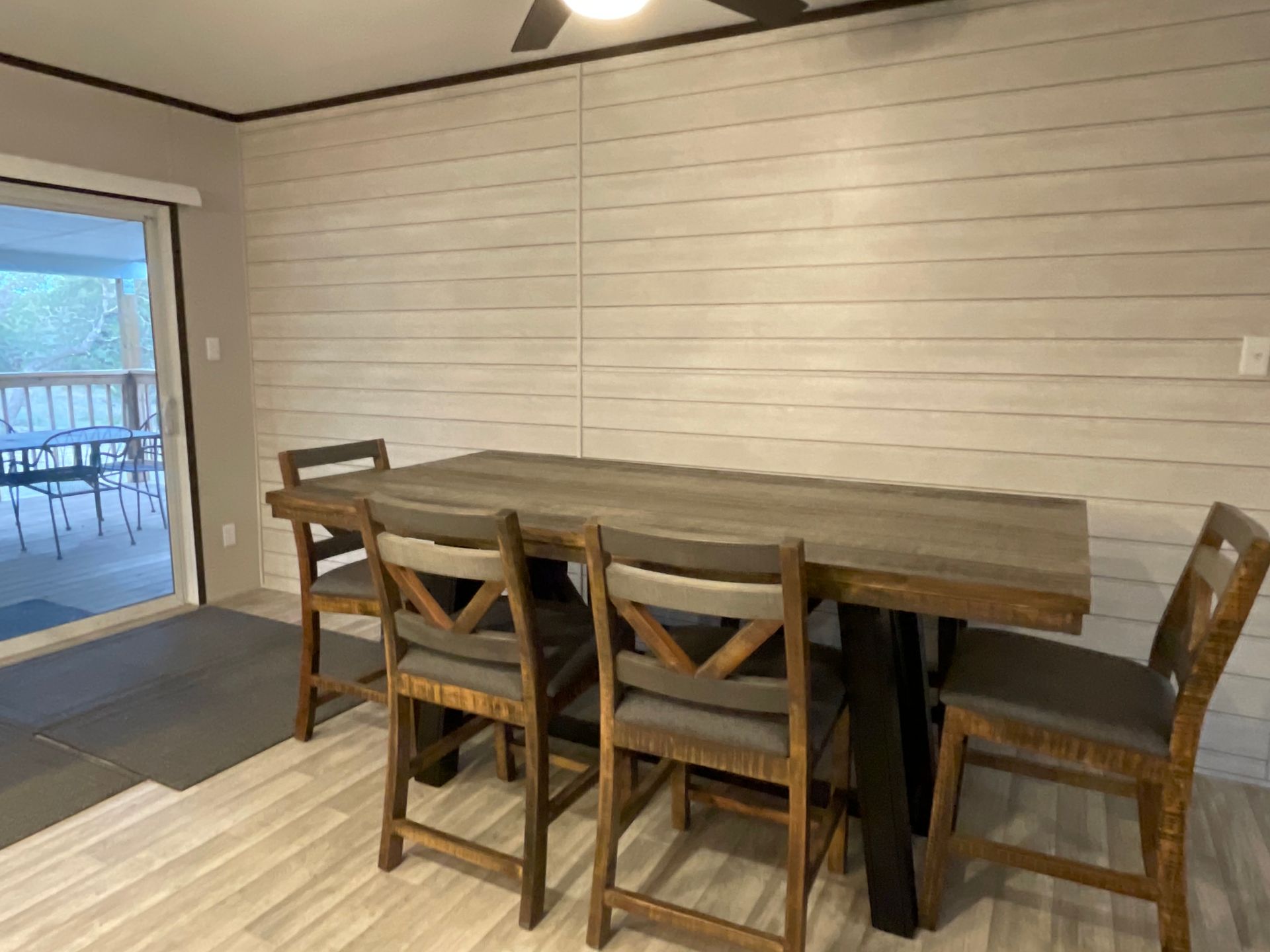 Entering the property through a private gate you will find a 2022 year model 5 bedroom, 3 bath manufactured double-wide home. Inside you will find an inviting open-concept design consisting of a living room, kitchen with a large eat-in bar, large pantry, and a dining room with sliding glass door to access the back porch. The primary suite features a spacious walk-in closet, a large bathroom with a dual-sink vanity and shower/tub. Four additional bedrooms provide comfortable retreats, sharing access to 2 full bathrooms. You will find a large utility room with abundant storage space. There is laminate wood flooring throughout and farmhouse accents. Enjoy the views of your property from the back porch that has 3 lighted ceiling fans and runs the entire length of the home. The home is serviced by a 30 gpm water well including insulated well house, a water softener system, 2500 gal water storage tank, and septic system. The details throughout this home make it welcoming inside and out.