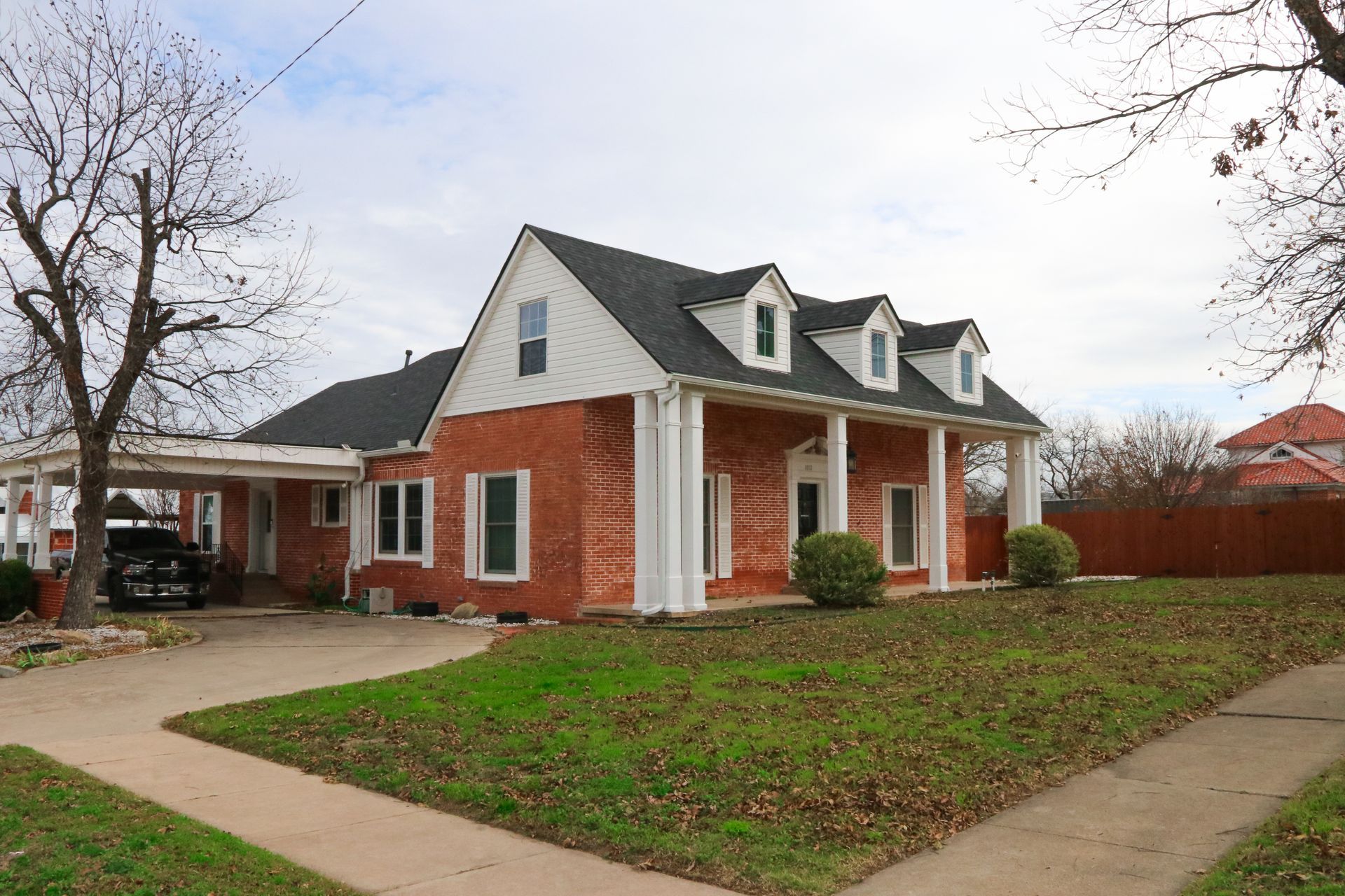 Ranch House Realty is proud to offer The Gilliam Home for sale. The Gilliam Home was constructed in 1950 in the beautiful colonial style. The Gilliam Family was a prominent Goldthwaite family with Mr. Gilliam being a local attorney. Though the home was constructed in 1950, it has been well-maintained to preserve many of the original colonial finishes. Inside you will find original hardwood floors, 3 bedrooms, 2 updated baths, 2 living rooms, a formal dining room, an updated kitchen, utility room and partially remodeled attic with 3 dormer windows. The home has a large front porch with columns, a covered side patio, privacy fence, colonial style side-covered carport with access to the kitchen and a separate 2 car garage with a 2nd story living space. The current owners have renovated the home with new electrical, plumbing, insulation and a new roof. A home of this age, style and condition is hard to find.