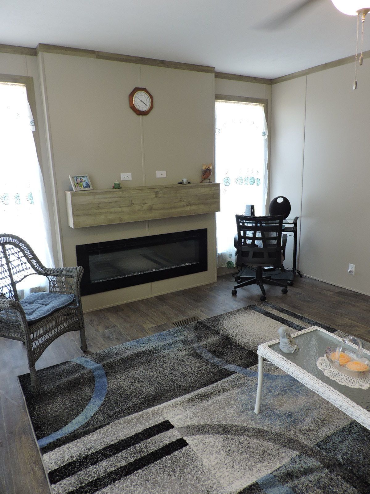 As you explore further, you'll notice the attractive Shaw Congoleum flooring, a perfect blend of style and durability. The mix of carpeted areas adds a cozy touch, providing comfort underfoot in the bedrooms and living spaces. A cozy electric fireplace graces the den, creating a warm ambiance and making it an ideal spot to relax and unwind.