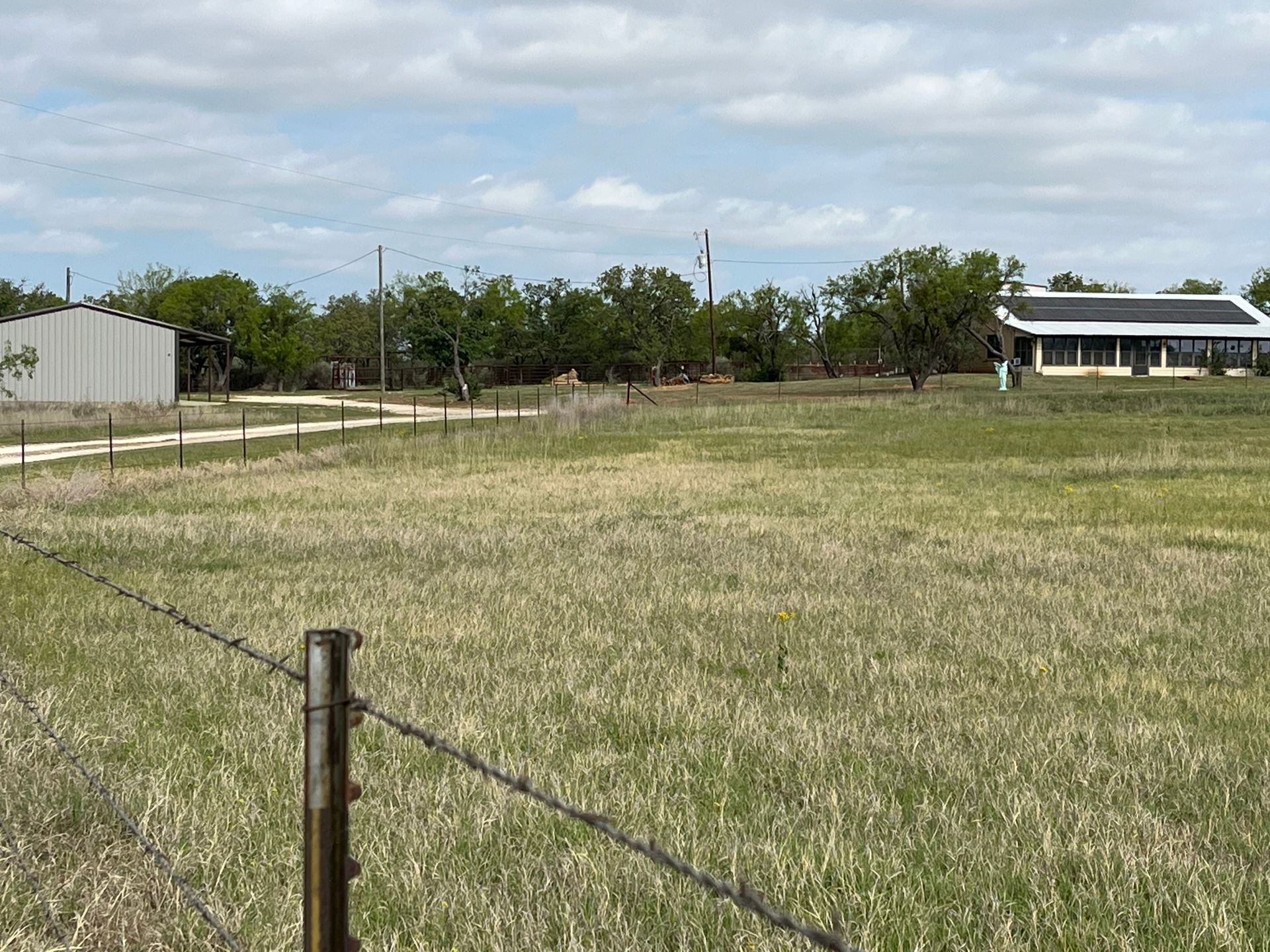 A diversified property with elevation changes, a 1-2 acre pond that never has gone dry in drouths, plenty of hard wood trees along with brush cover for wildlife. The land has been used for cattle but will run other livestock as well as a great hunting place. Also, sitting at the back of the property is a 60-65 acre field with a little TLC could make a terrific hay field. As you turn in the gate you will drive down a lane that leads to the house, shop, covered shed and pipe pens. The brick home is a split 3 bedroom, 2 bath containing 1643 square feet, under a metal roof. The home is total electric, powered by solar panels on roof. Home has central air and heat, ceiling fans, internet and other updated features. To enter the home you will step into an enclosed porch the length of the house. Through the front door you will walk into the living room with a wood burning stove. Wooden beams accent the ceiling as well as wood trim. A large bar with storage separates the living room and dining room. The kitchen contains stained wood cabinets with quartz counters. Laundry room sits off of the kitchen. Flooring consists of tile and laminate. The shop is 60X30 with electricity, insulated, wood burning stove, 2 roll up doors, 2 walk through doors, windows, office, bath, and bunk house with beds. The shed is equipped with electricity and an RV cover as well as some storage. This is a property you will not want to miss. Come take a look.