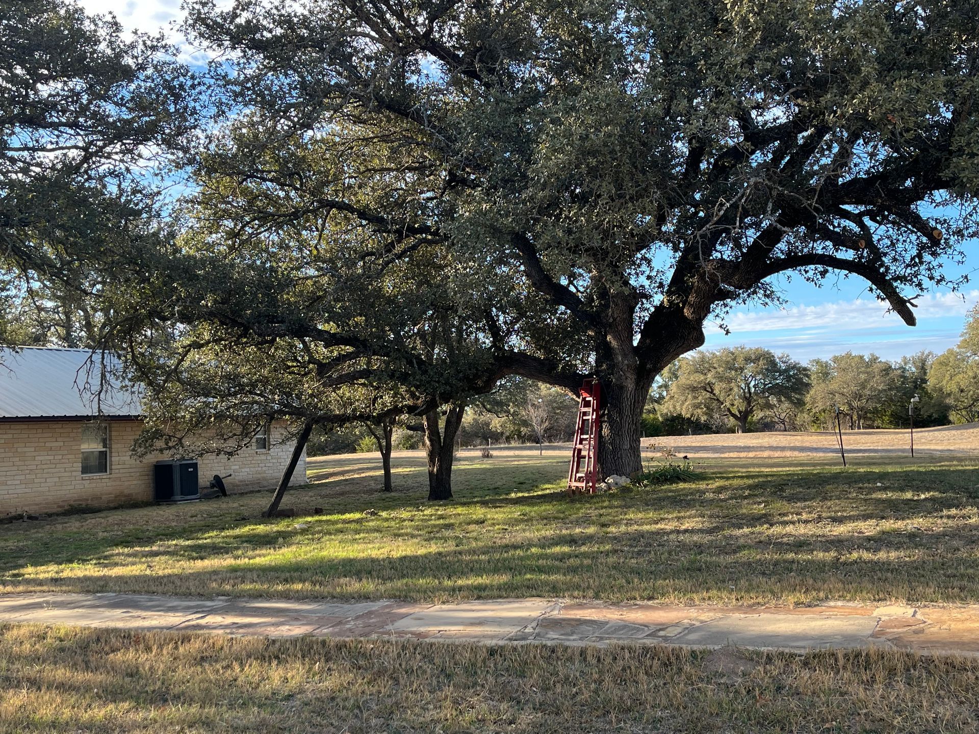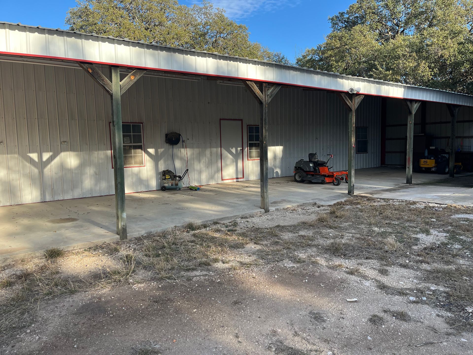 Fantastic Location on highway for a business and/or residential property. This property contains 10.46 with a pond, trees and has plenty of room for expanding. There are 2 metal buildings on concrete with 1800 square feet in each. They both have several roll up doors, windows, walk-in door and are both insulated and have electricity. One has 2 bedrooms with a bath between with central heat/air to the rooms only. This building also has an equipment shed on concrete. There are 3 storage buildings outside as well with one on concrete. The brick home with a metal roof and a detached carport is nestled among the trees with a caliche drive that circles the acreage. The house has 2 primary bedrooms, each with its own bath. There are several bonus rooms that could be used for extra bedrooms, office, game room, playroom or study along with a 3rd bath. The kitchen has plenty of storage with appliances that convey with home. A small bar separates the kitchen from dining room. The living room contains a wood burning rock fireplace. Other features include: all electric, central heat/air, ceiling fans, flooring of carport, linoleum and tile, wood trim and crown molding in dining and living room. Many more amenities one needs to see before it is too late!